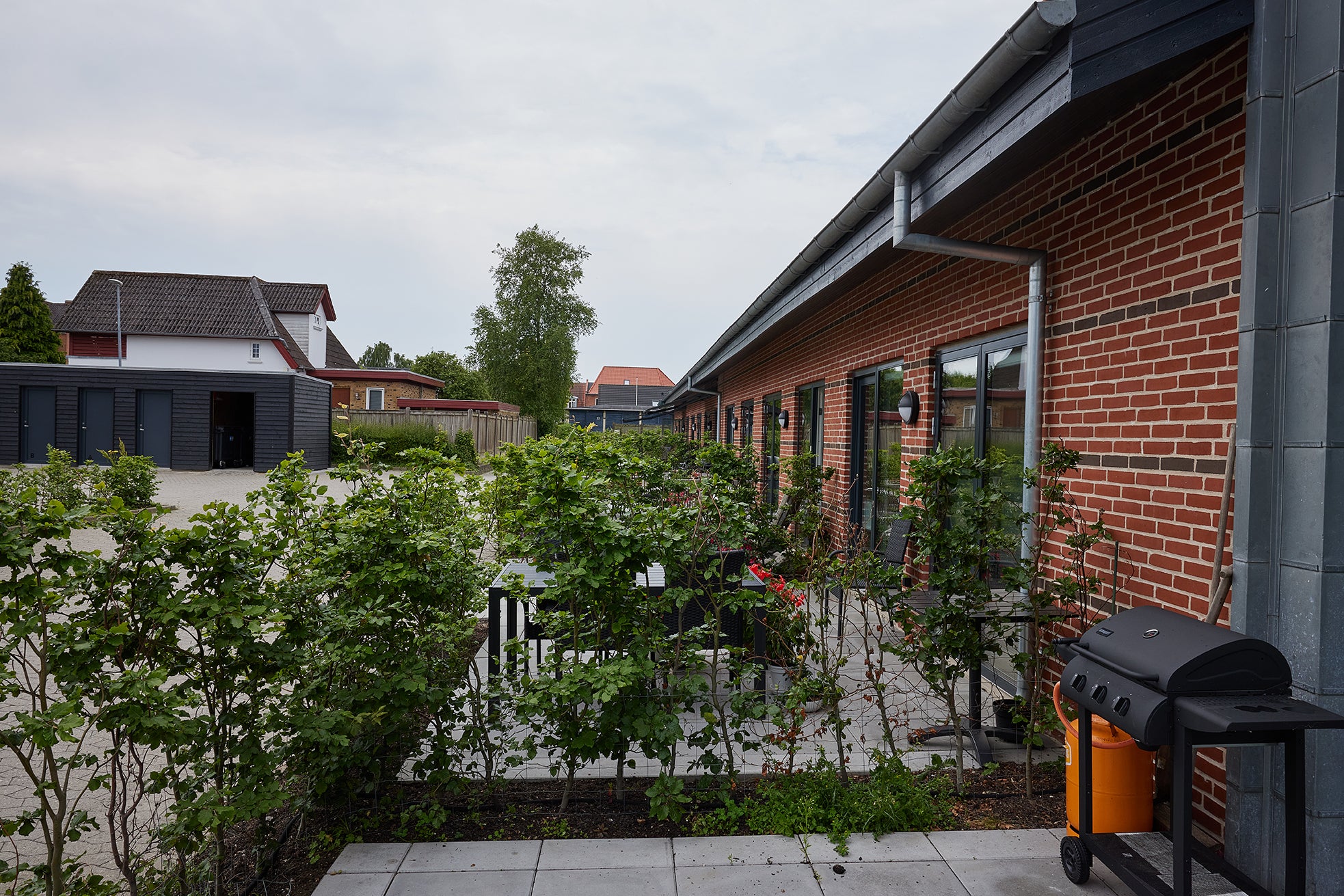 Til hvert rækkehus er der egen gårdhave, som er en lille oase af ro, hvor du kan slappe af og sætte dit eget præg på haven med krukker fyldt med duftende blomster og grønne planter, som skaber en hyggelig atmosfære mod indgangen til din bolig.