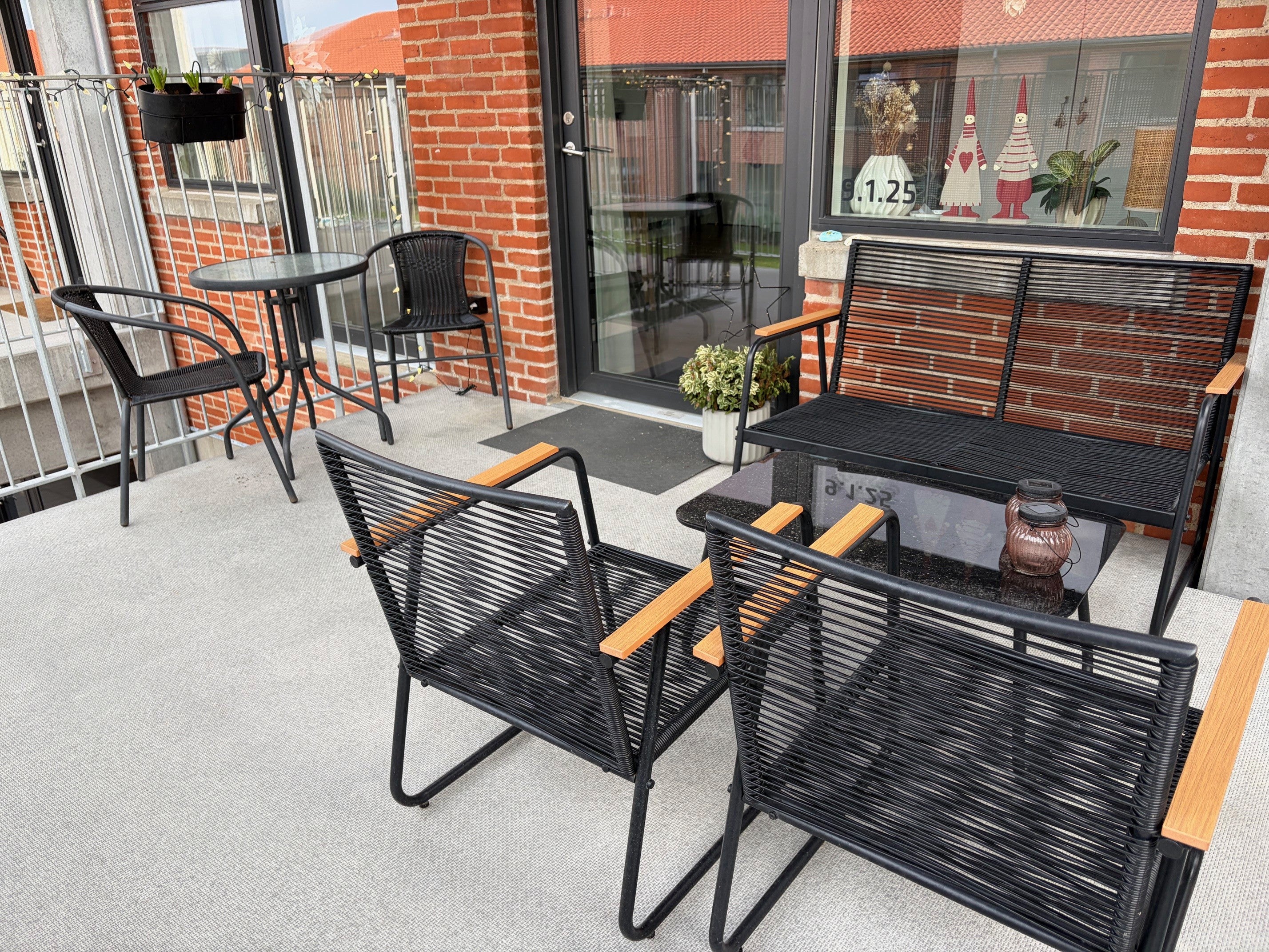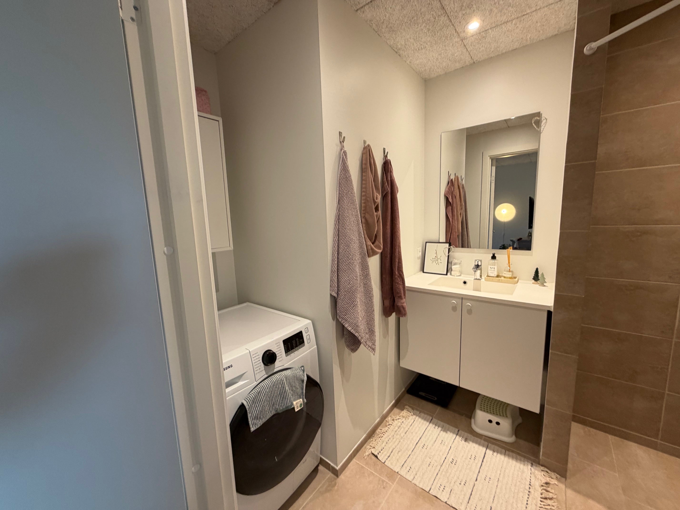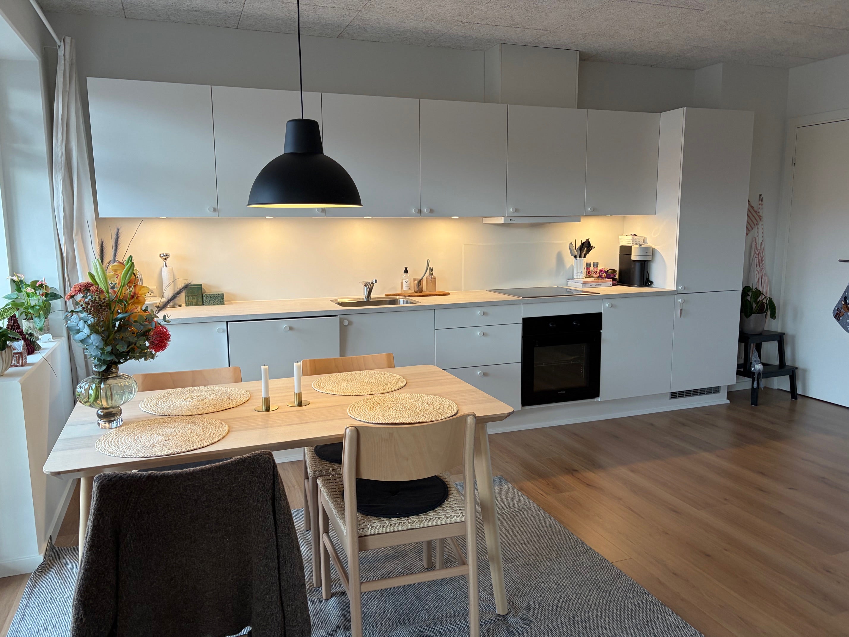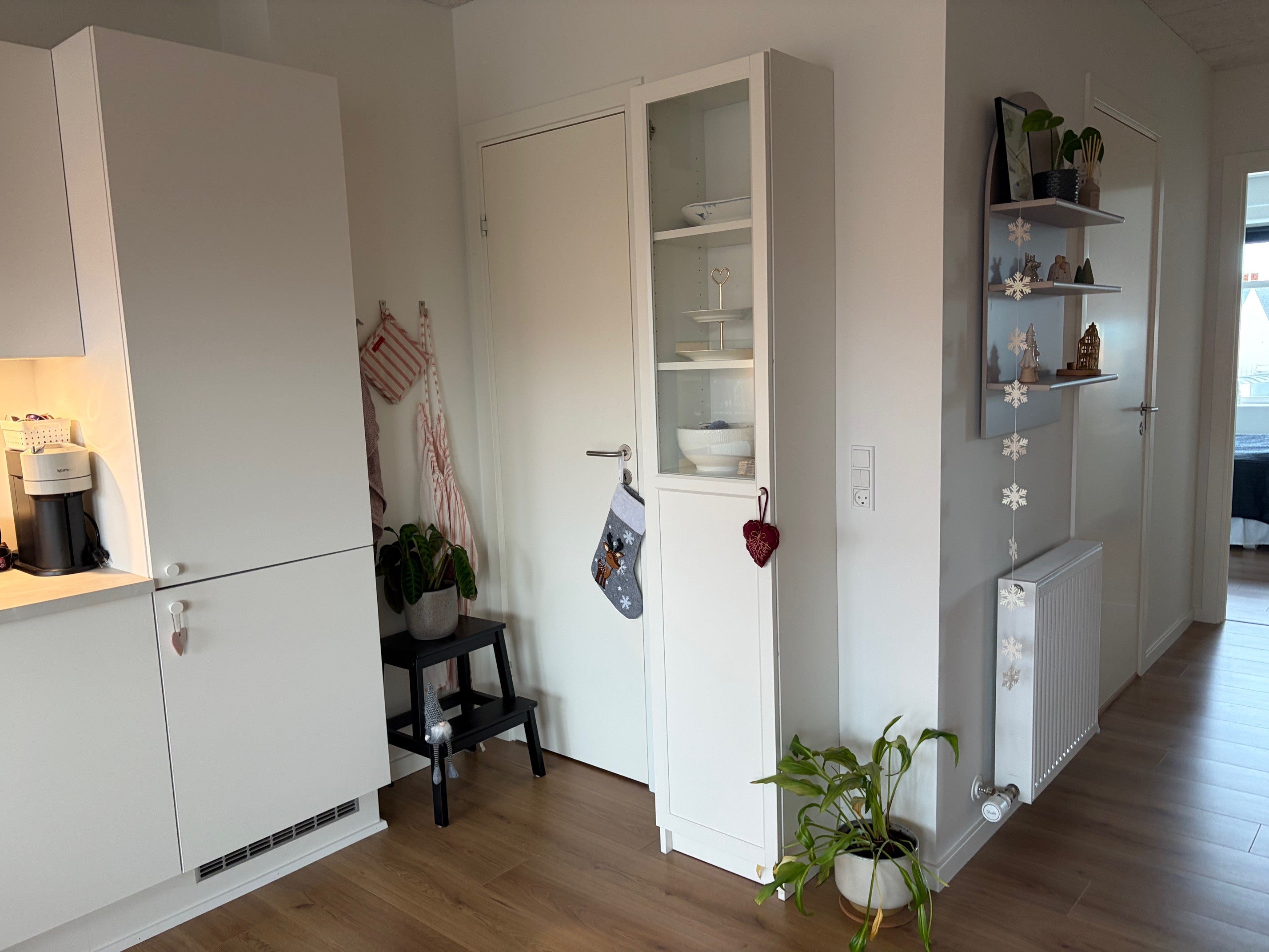 Lejligheden er indrettet med entre med skabe samt stue/alrum med inventar fra Invita samt alt i indbygningshvidevarer – inkl. opvaskemaskine. Herudover 2 store soverum med skabe, teknikrum samt lækkert badeværelse med gulvvarme, Invita-skabe og forberedelse for vaskesøjle. Endelig er der et rummeligt depotrum i selve lejligheden – ligesom der også er et nyt stort depotrum i gården.