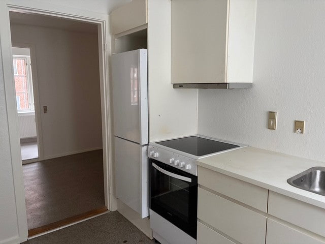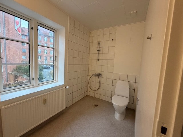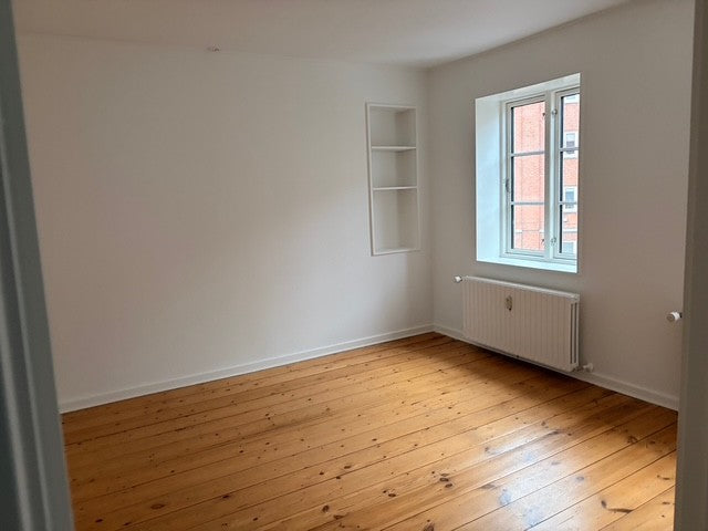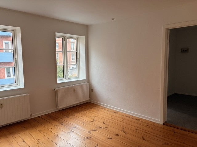 Hyggelig og rummelig 2' er i Schousgade-kvarteret. Lejligheden er indrettet med stor entre, badeværelse, køkken, stue og soveværelse med plankegulve.