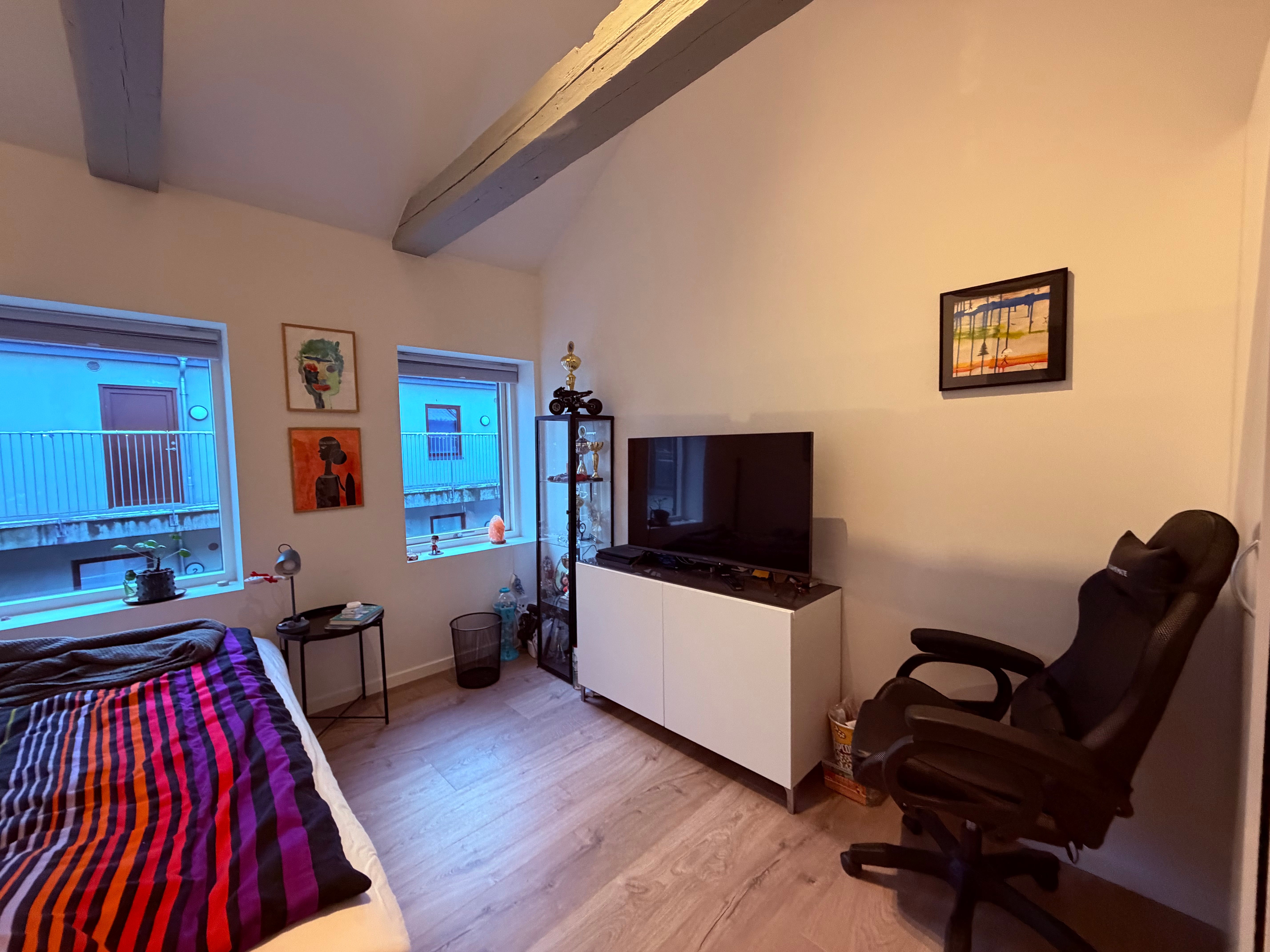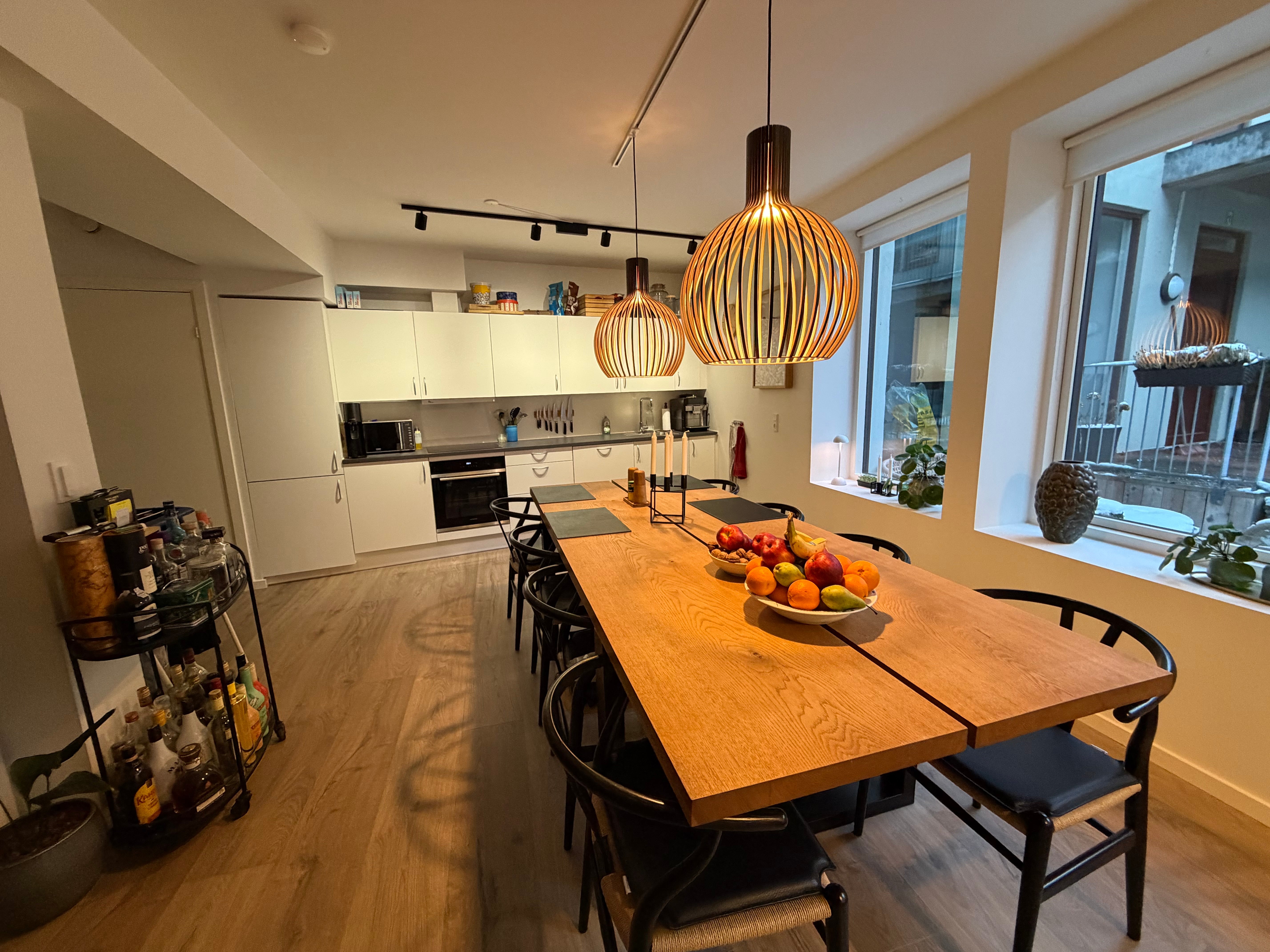 Stor moderne lejlighed midt i Randers C – med privat gårdhave. Unik og rummelig lejlighed beliggende i Randers’ absolutte centrum – nær det ikoniske Hotel Randers og med få skridt til gågader og Rådhustorvet. Lejligheden ligger i en tidligere erhvervsejendom "Modecentret", som nu danner rammen om moderne boliger. Boligen er opført i to plan og indeholder i stueetagen entré med skabe samt et stort lyst køkken/alrum med inventar fra AUBO og alt i hvidevarer. Badeværelset med gulvvarme, bruseniche, væghængt toilet og klargjort til vaskesøjle. På førstesalen er der lofter til kip med synlige hanebånd og indrettet med tre gode værelser, et åbent kontor og en stue eller alternativt et værelse. Alle værelser har indbyggede skabe. Overalt er der flotte laminatgulve i eg/plank og hvidmalede vægge. Adgang til lejligheden sker via et lækkert, lukket gårdmiljø. Til boligen er der egen privat gårdhave med plads til både havemøbler og grill. Der medfølger desuden stort kælderrum samt adgang til cykelrum. Ejendommen har elevator og aflåst indgang med porttelefon.